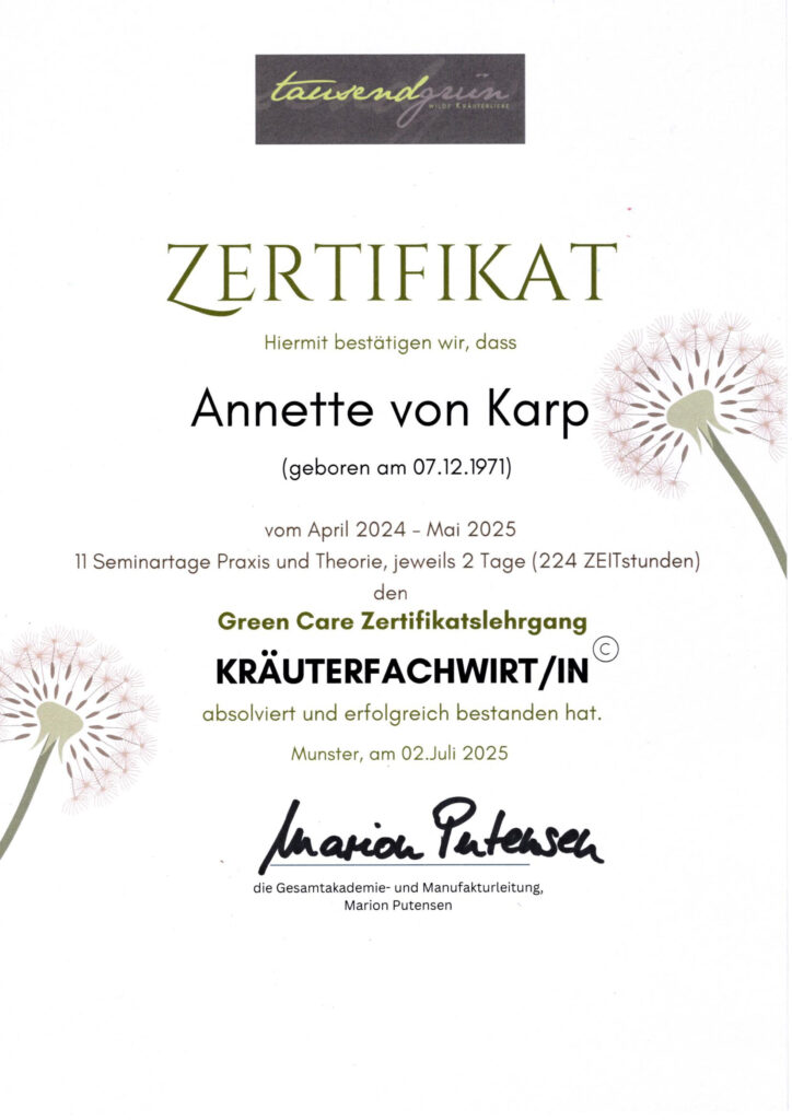 Gemeinsam lernen wir Wildkräuter sicher zu erkennen, erfahren Spannendes über ihre Verwendung in Küche und Hausapotheke und genießen die Zeit in der Natur. Ideal für Naturliebhaber und alle, die ihr Wissen über heimische Pflanzen vertiefen möchten.